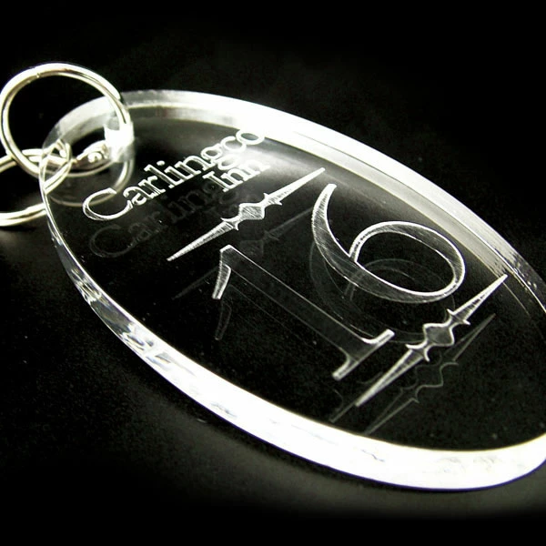 Strong and durable clear acrylic oval key tags that can be engraved on one side to your requirements.