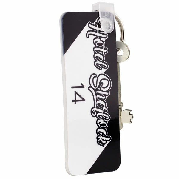 A strong and durable acrylic rectangle key tag that can be printed on one side in full colour to your requirements.