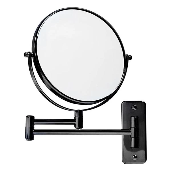 High quality hotel wall mounted double arm double sided vanity/shaving mirror with black finish. This wall mounted cosmetic and shaving mirror offers a convenient addition to the bathroom.