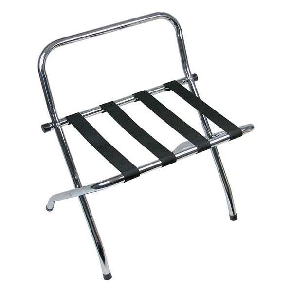Corby Ashton is a stylish chrome metal luggage rack with integrated rear bar to help protect bedroom wall. Ideal solution for storage of bags and cases in a hotel room.