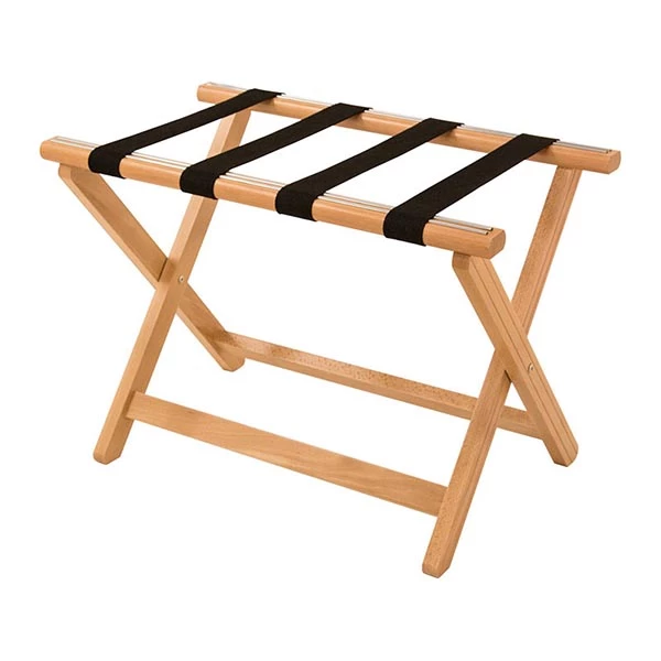 A stylish beech finish luggage rack made from good quality wood. Ideal solution for storage of bags and cases in a hotel room.