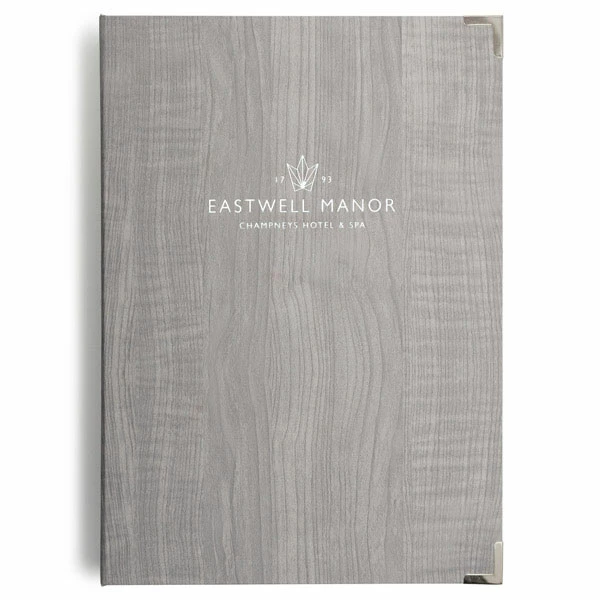 Our versatile tag fixing can be used to hold up to 24 pages of printed information held within plastic pockets. We offer additional internal storage with built in pockets to match your cover colour. We offer Optional gold, black or silver corners.