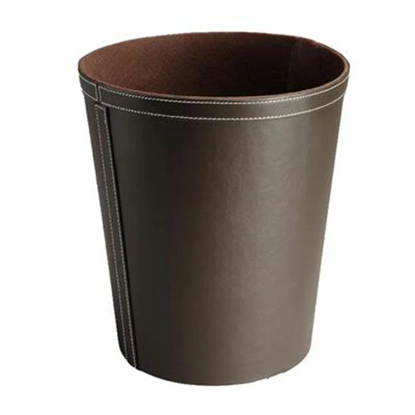 A sleek contemporary design round waste bin manufactured from luxury faux leather on both the exterior and the interior.