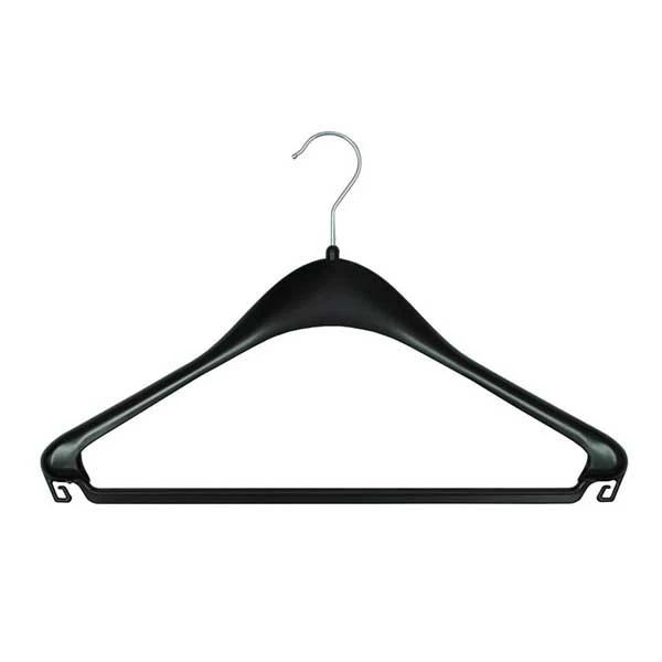 Hotel Hooked Coat Hanger – Moulded Plastic – Trouser Bar – Standard Hook – 50 Per Case – Black