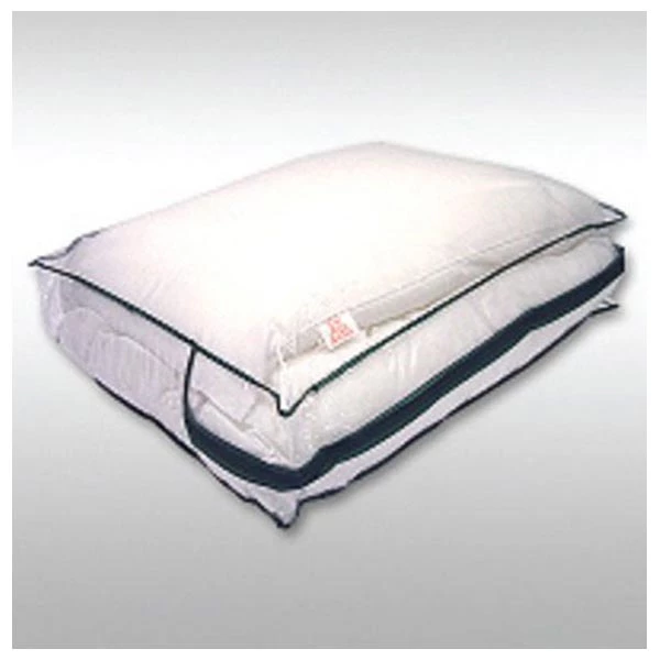 Zipped transparent good quality thick heavy duty Polyethylene. Will hold 2 pillows.