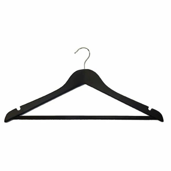 Hotel Wooden Hooked Coat Hanger – Chrome Standard Hook – Wooden Bar – 50 Per Case – Black Wood