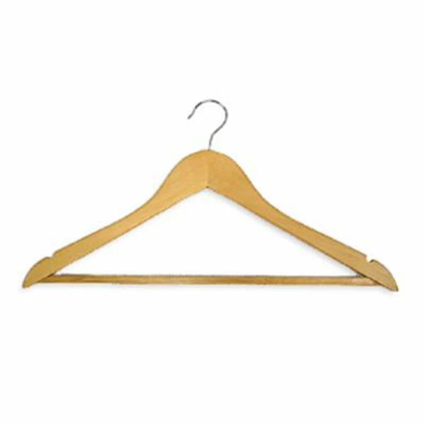 Hotel Wooden Hooked Coat Hanger – Standard Hook – Wooden Trouser Bar – 50 Per Case – Light Wood