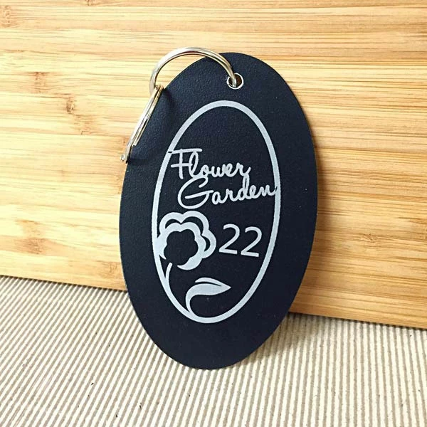These stylish key tags are sure to impress your guests with their quality. These metal key tags can be engraved on either one or two sides. Engraving reveals the silver metal underneath. Engrave your logo or design for a one off set-up charge £25.
