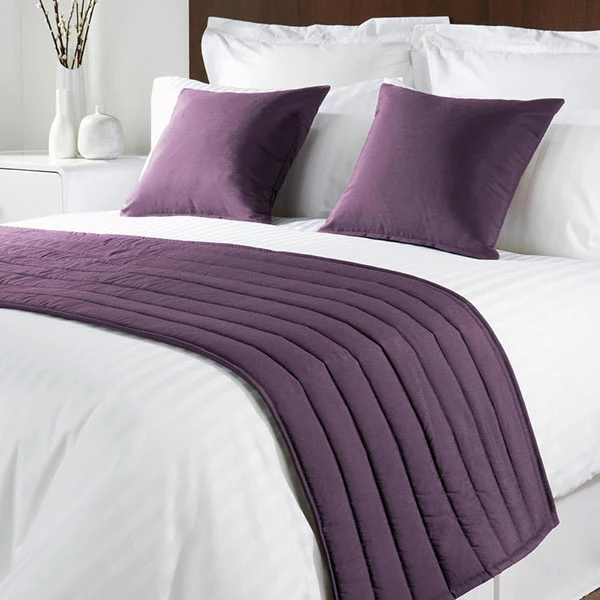 Mitre Simplicity is a pretty Lilac coloured high quality classic design quilted bed runner. Manufactured from fine soft 100% polyester faux silk. The bed runner has a horizontal channel stitched design.