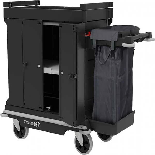 This Numatic housekeeping laundry trolley NKU31RHF has a hard-front storage system which provides more security with lockable doors. The perfect choice for hotels, complete with a simple yet modern structure suitable for any commercial environment.