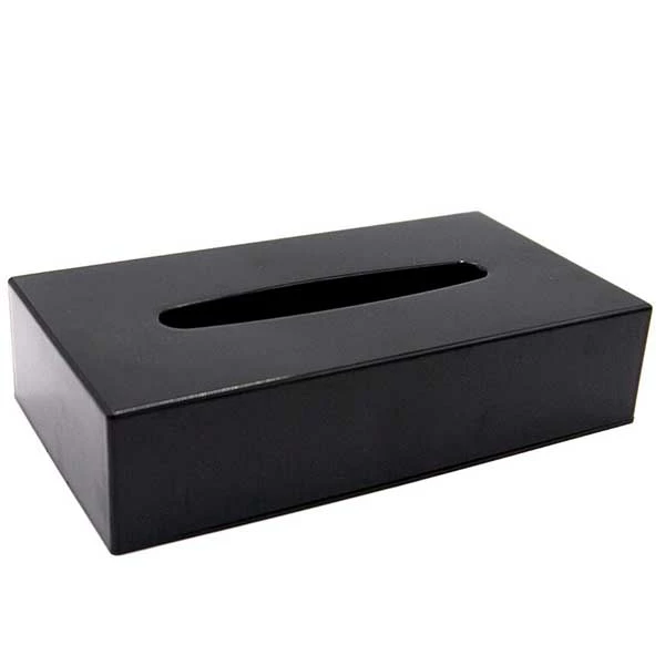 High quality black oblong tissue box cover made from robust ABS plastic. Tissue boxes can now be elegantly covered with our high quality tissue box covers. Easy to refill. Place the box of tissues on to the plastic base and place the top over the tissues.